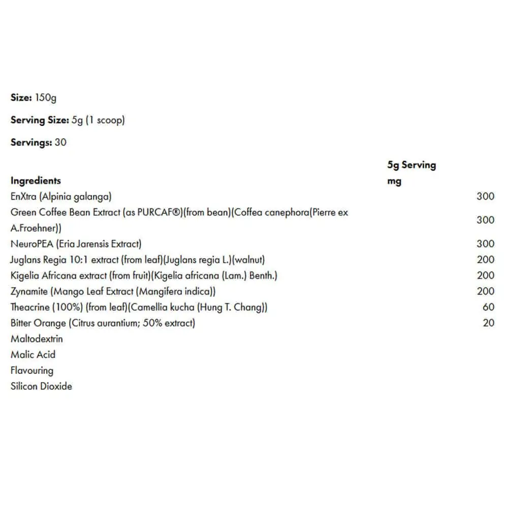 • Oργανική καφεΐνη PurCaf® 300 mg με EnXtra® και NeuroPEA για άμεση, αλλά σταθερή ενεργειακή ώθηση χωρίς έντονη καταβολή μετά την προπόνηση.